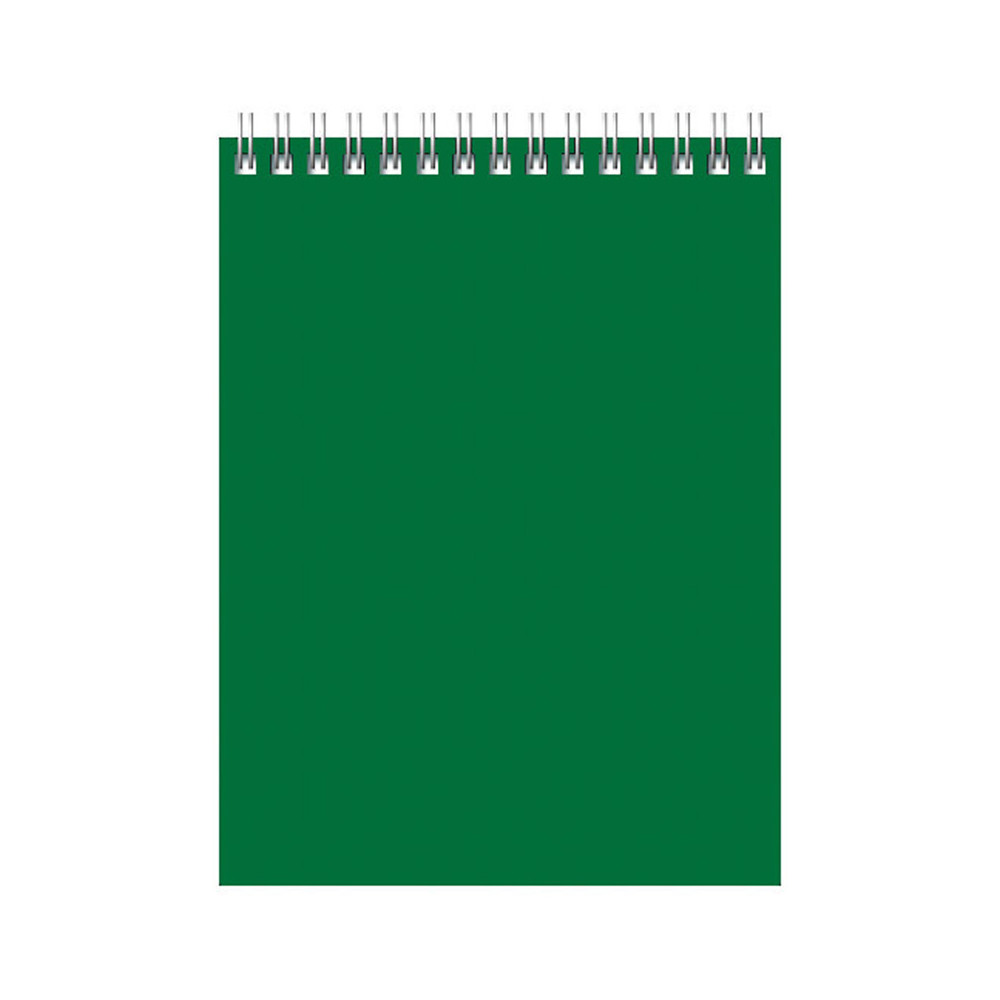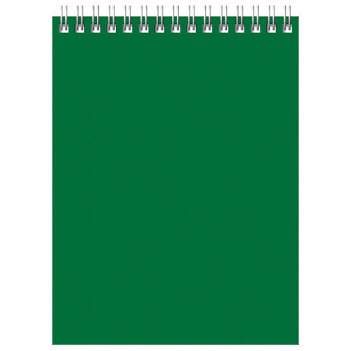 Состоит из 60 листов размером 100*145 мм офсетной бумаги белого цвета плотностью 60 г/м2. Линовка – клетка. Обложка – мелованный картон зелёного цвета. Гребень позволяет легко вынимать листы при необходимости.