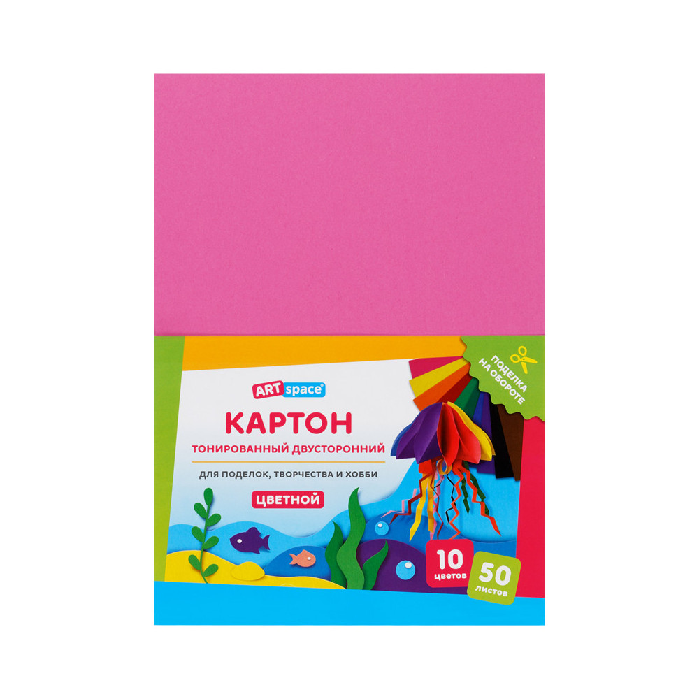 В папке 50 листов 10-ти цветов ассорти тонированного картона, размером 210*297 мм. Плотность картона: 180 г/кв.м. Картон двусторонний.