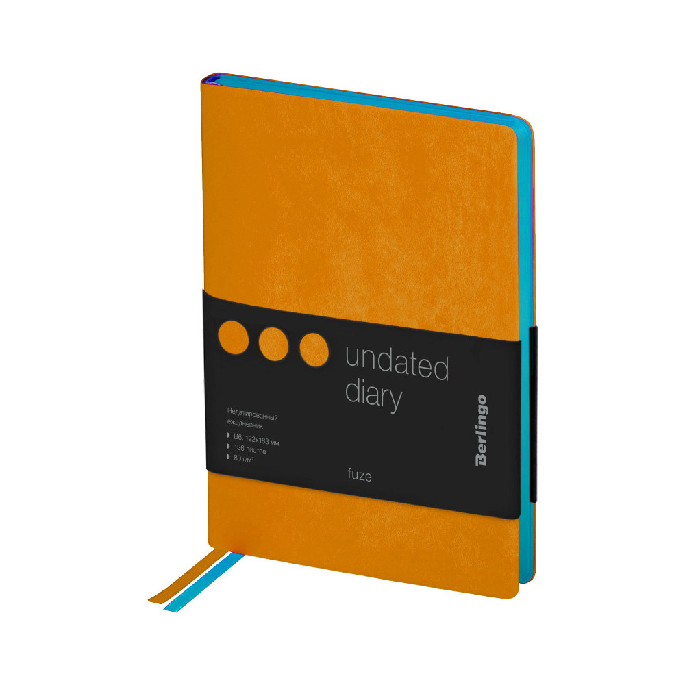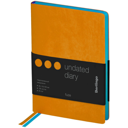 Описание: Яркий ежедневник Berlingo Fuze формата B6 имеет мягкую обложку из высококачественной кожи оранжевого цвета. Общий дизайн изделия дополняет яркий голубой срез, благодаря чему ежедневник смотрится необычно. Внутренний блок состоит из 136 листов высококачественной кремовой бумаги повышенной плотности 80 г/м2 с пантонной печатью в 2 краски. Недатированный ежедневник Berlingo Fuze представлен в размере 122 на 183 мм.