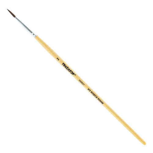 Кисть из волоса пони отлично впитывает и отдает краску, хорошо держит форму, долговечна и надежна. Кисть №2 позволит прорисовывать мелкие детали. Деревянную лакированную рукоятку кисти удобно держать в руке.