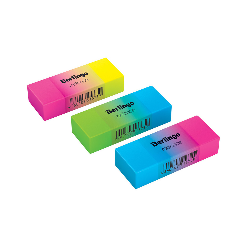 Упакованы в яркие картонные дисплей-боксы. У каждого ластика есть штрих-код.