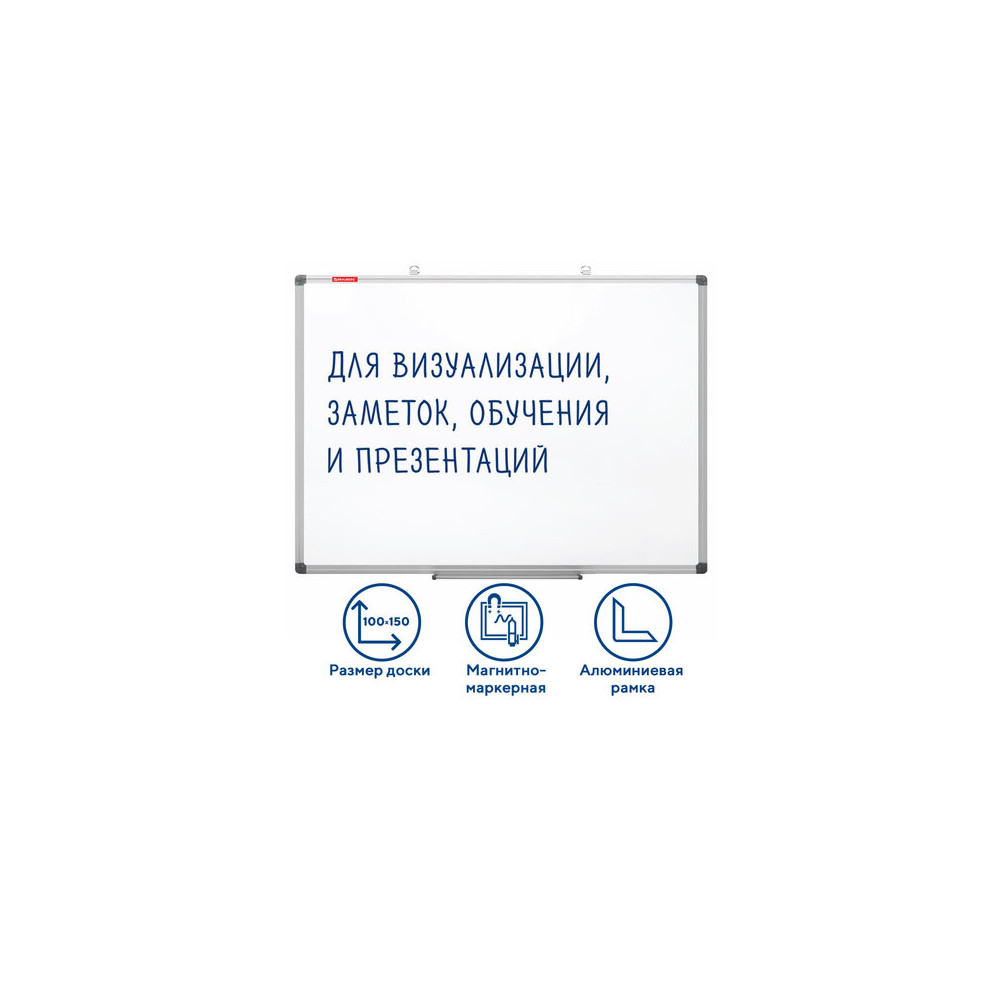 Лаковое покрытие предназначено для письма специальными маркерами для белой доски, а металлическая поверхность позволяет размещать информацию при помощи магнитов. Доска размером 100х150 см имеет укрепленные пластиковые уголки, которые позволяют скрыть места крепления к стене. Профиль придает изделию дополнительную прочность и современный стильный внешний вид. Элементы крепления входят в комплект. Для защиты рабочей поверхности доски на нее нанесена защитная пленка. Перед началом работы – удалить защитную пленку. При должном уходе за рабочей поверхностью доски при помощи чистящей жидкости-спрея и стирателей BRAUBERG поверхность магнитно-маркерной доски прослужит более 10 лет.