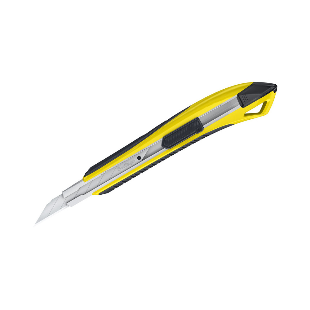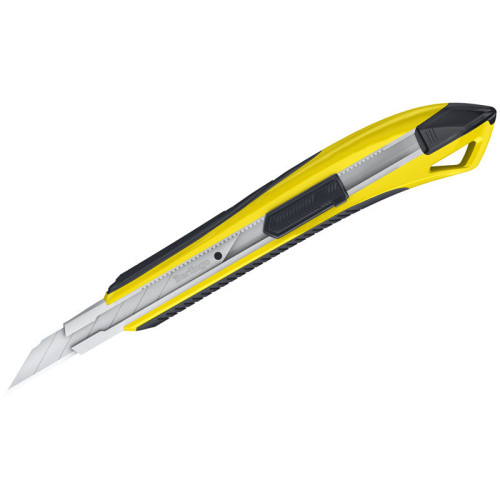 Описание: Серия "Razzor 300". Нож канцелярский с системой автоматической фиксации лезвия auto-lock. Корпус ножа выполнен из высококачественного ABS пластика с применением технологии двойного литья (прорезиненные вставки). Имеет металлические направляющие. Комплектуется износостойким лезвием из стали SK5 с углом 30°. Ширина лезвия - 9 мм. Индивидуальная упаковка - блистер с европодвесом. На оборотной стороне блистера есть перфорация для более удобного извлечения инструмента из упаковки