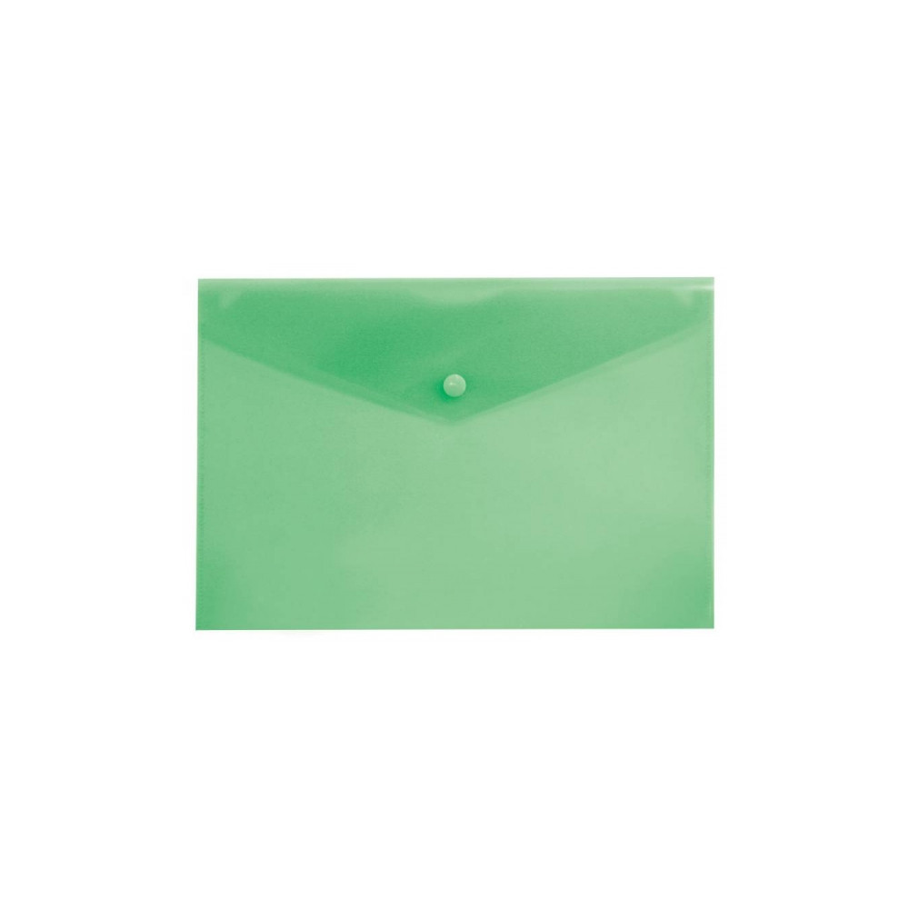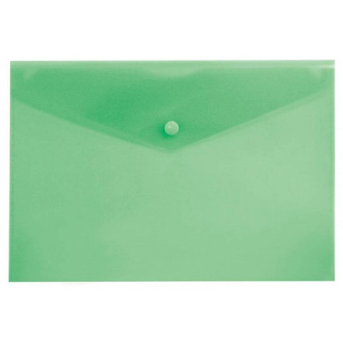 Папка формата А4 на кнопке предназначена для защиты от смятия и загрязнений бумаг и документов формата А4 и менее при переноске. Изготовлена из пластика зеленого цвета толщиной 0,18 мм. Имеет треугольный клапан, который предотвращает выпадение документов. Обладает вместительностью до 120 листов стандартной плотность.