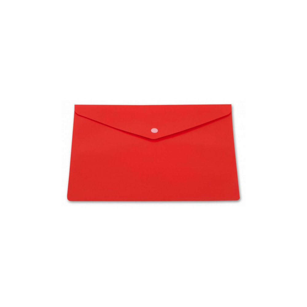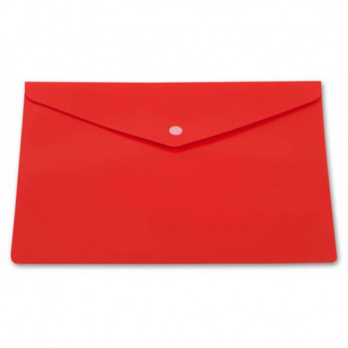 Папка формата А5 на кнопке предназначена для защиты от смятия и загрязнений бумаг и документов формата А5 и менее при переноске. Изготовлена из пластика красного цвета толщиной 0,18 мм. Имеет треугольный клапан, который предотвращает выпадение документов. Обладает вместительностью до 120 листов стандартной плотность.