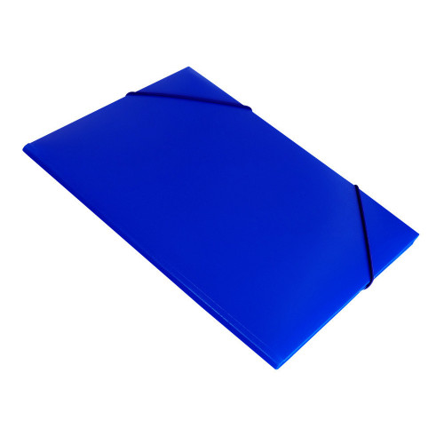 Папка формата А4 на резинках предназначена для защиты от смятия и загрязнений бумаг и документов при переноске. Изготовлена из пластика синего цвета толщиной 0,4 мм. В закрытом состоянии фиксируется двумя резинками по углам. Внутри снабжена тремя клапанами, котрые предотвращают выпадение бумаг. Корешок 15 мм позволяет вместить до 150 листов стандартной плотности.