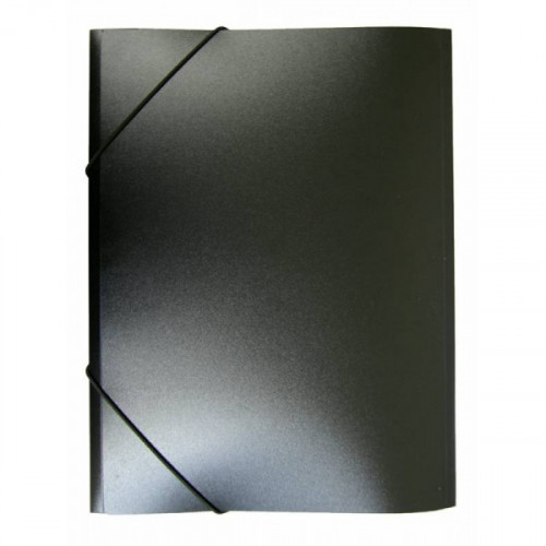 Папка формата А4 на резинках предназначена для защиты от смятия и загрязнений бумаг и документов при переноске. Изготовлена из пластика черного цвета толщиной 0,4 мм. В закрытом состоянии фиксируется двумя резинками по углам. Внутри снабжена тремя клапанами, котрые предотвращают выпадение бумаг. Корешок 15 мм позволяет вместить до 150 листов стандартной плотности.