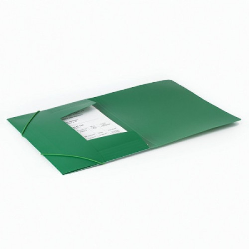 Папка формата А4 на резинках предназначена для защиты от смятия и загрязнений бумаг и документов при переноске. Изготовлена из полипропилена зеленого цвета толщиной 0,5 мм. В закрытом состоянии фиксируется двумя резинками по углам. Внутри снабжена тремя клапанами, котрые предотвращают выпадение бумаг. Корешок 37 мм позволяет вместить до 300 листов стандартной плотности.