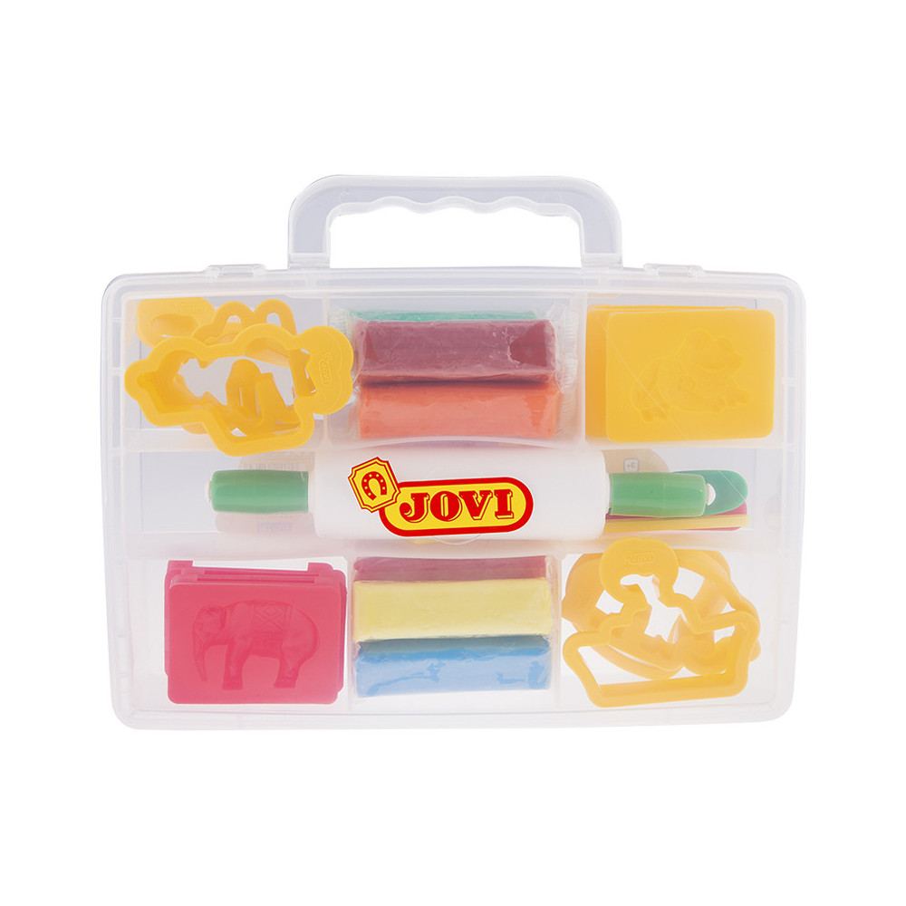 Описание: Легендарный пластилин JOVI на растительной основе идеален для начала обучения лепке и для уроков в школе и творческих студиях. Благодаря усовершенствованной формуле с воском пластилин JOVI безопасен, обладает повышенной пластичностью, хорошо лепится, прекрасно держит форму, не деформируется, легко извлекается из формочки, не крошится, не высыхает, цвета прекрасно смешиваются между собой, слепленные фигурки не опадают со временем. Используется для техники "Рисование пластилином" и пластилиновой мультипликации. Не пачкает руки, снимается с любой поверхности без усилий, не оставляя пятен. Гипоаллергенен, без консервантов, не содержит глютен. Набор для лепки: пластилин на растительной основе 8 цветов по 25 грамм, 12 форм (6 односторонних и 6 сквозных), 3 стека и скалка в пластиковом чемоданчике. Страна производства Испания