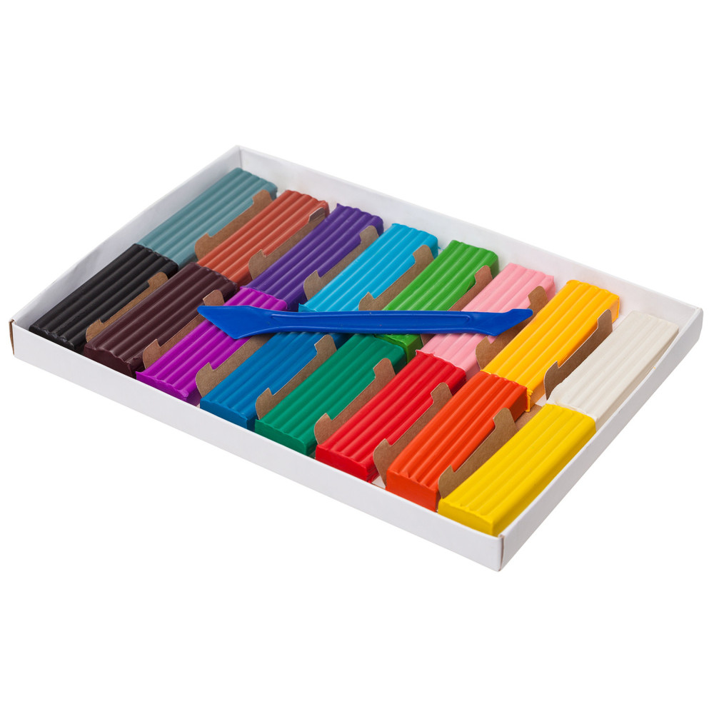 Описание: Пластилин предназначен для лепки и моделирования. Детский пластилин создан с учетом передовых современных технологий, содержит импортные пигменты, удобен в работе, прекрасно развивает моторику ребенка. Изготовлен из высококачественных компонентов, благодаря которым он не окрашивает руки, не прилипает к пальцам, не оставляет жирных следов, хорошо держит форму, пластичен, легко разминается. Количество цветов: 16. В наборе имеется специальный стек для лепки и создания поделок. Общая масса пластилина: 320 грамм. Срок годности неограничен. Упаковка: картонный пенал, внутри дополнительно в пакете