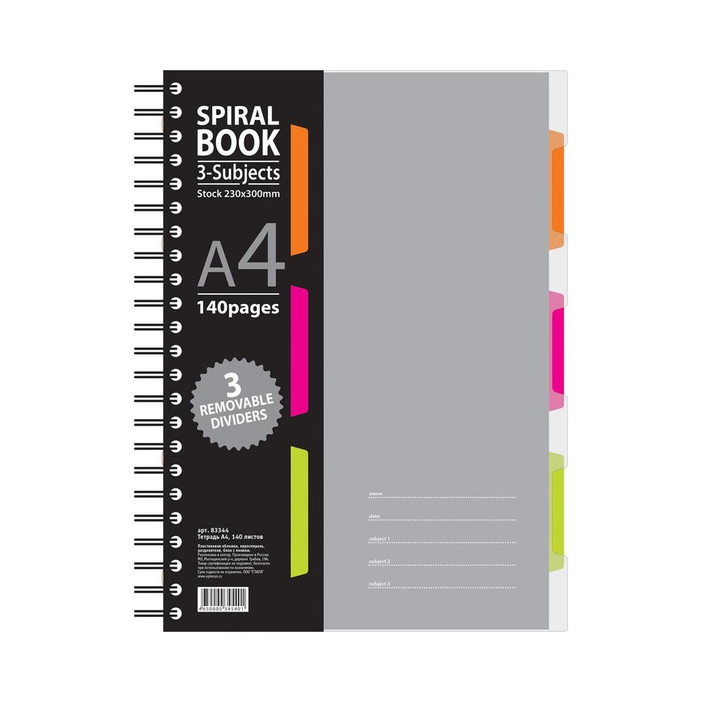 Описание: Бизнес-тетрадь Attache Selection Spiral Book формата А4, размер 230x298 мм. Обложка с вырубкой выполнена из жесткого экологичного прозрачного пластика серого цвета с волнистым рельефом. Двойная толстая евроспираль увеличенного диаметра. Внутренний блок из белой офсетной бумаги плотностью 70 г/кв.м. Размер блока — 205x297 мм.Бизнес-тетрадь содержит пластиковые съемные разделители. Первый лист из плотной бумаги с запечаткой, разлиновка в клетку с аккуратными полями.
