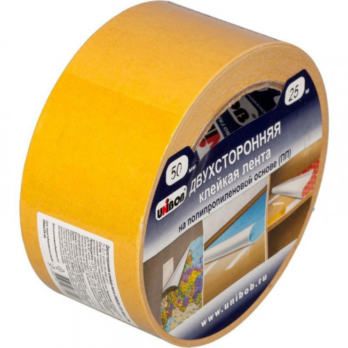 Описание: Клейкая лента двусторонняя Unibob. Клейкая лента на полипропиленовой основе используется для склеивания гладких поверхностей и материалов при проведении монтажных, ремонтных, дизайнерских и оформительских работ. Рабочая температура: от ?10 до 50 градусов. Ширина — 50 мм, длина — 25 м. Толщина ленты — 71 мкм. Цвет — белый. Основные преимущества продукта: — Удобная замена механическим крепежам. — Подходит для монтажа легких предметов интерьера. — Применяется как и для горизонтальных, так и для вертикальных поверхностей. — Небольшая толщина пленки делает место склейки практически незаметной. — Клеевой слой на основе синтетического каучука обеспечит надежное крепление на вертикальные и горизонтальные поверхности. — Цветная информативная этикетка. — Каждый рулон упакован в термоусадочную пленку, что позволяет сохранить все свойства и технические характеристики продукта. Условия хранения: При хранении в собственной упаковке при температуре от 0 до 35 градусов и относительной влажности 50%. Срок хранения — 12 месяцев. Перед использованием убедитесь в том, что поверхность соприкосновения полностью сухая и очищена от жира и пыли. Количество лент в упаковке — 1 шт. Количество упаковок в коробе — 36 шт.
