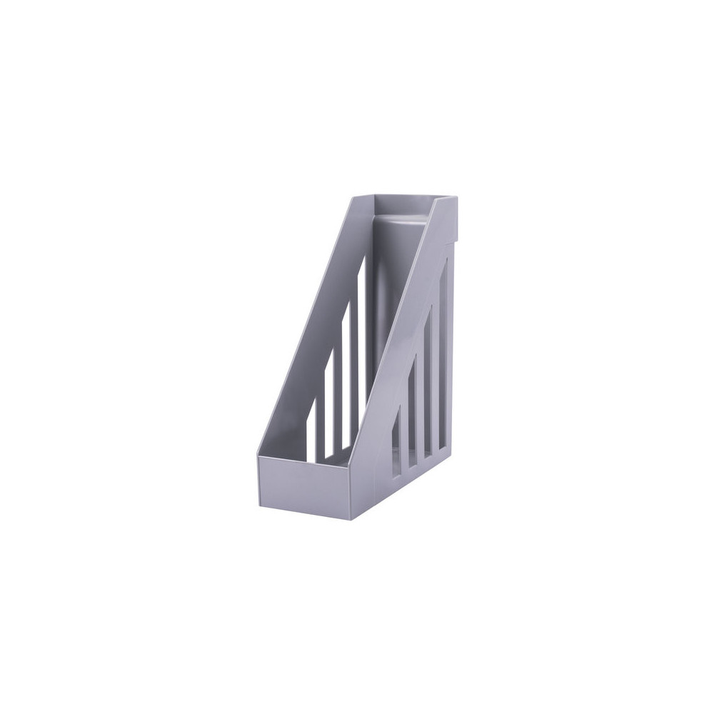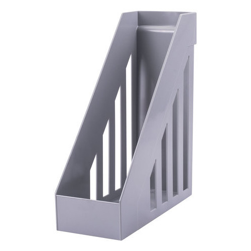 Выполнен в сером цвете, с одним отделением увеличенной ширины и с табличкой для маркировки. Предназначен для хранения бумаг формата А4. Представляет собой устойчивую неразборную конструкцию с отверстиями по бокам. Размеры: высота - 290 мм, ширина - 100 мм, глубина основания - 245 мм, полная глубина - 265 мм.